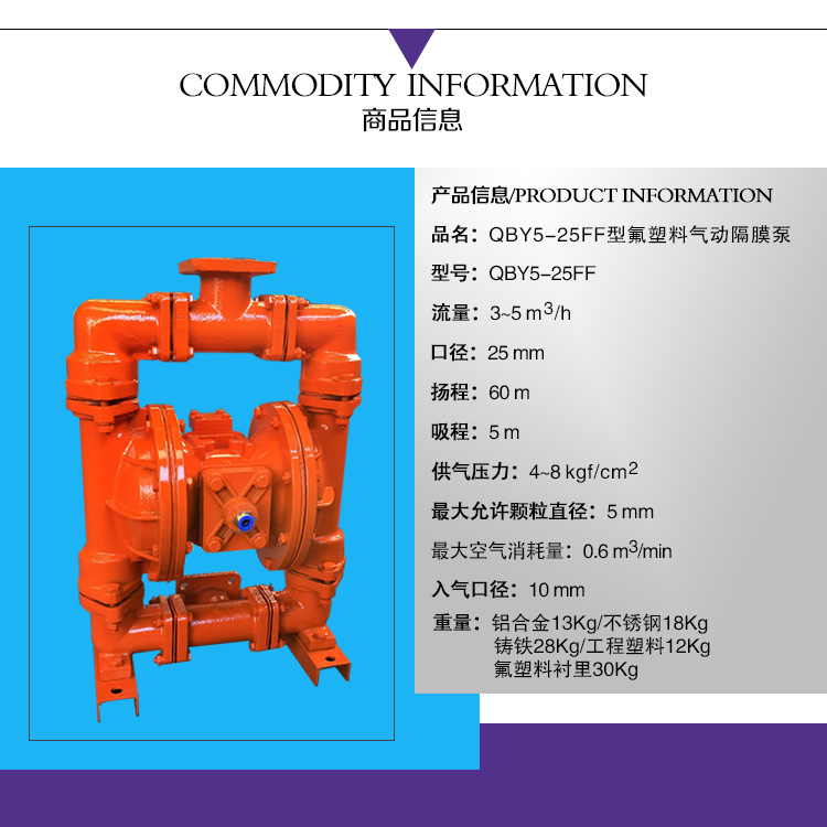 QBY5-25FF46氟塑料襯里氣動(dòng)隔膜泵